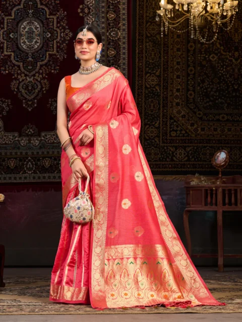 Women’s Woven Design Kanjivaram Linen Saree With Blouse Piece 7