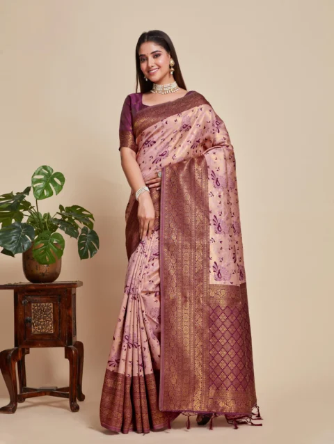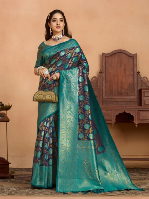 Women’s Woven Design Kanjivaram Linen Saree With Blouse Piece 5