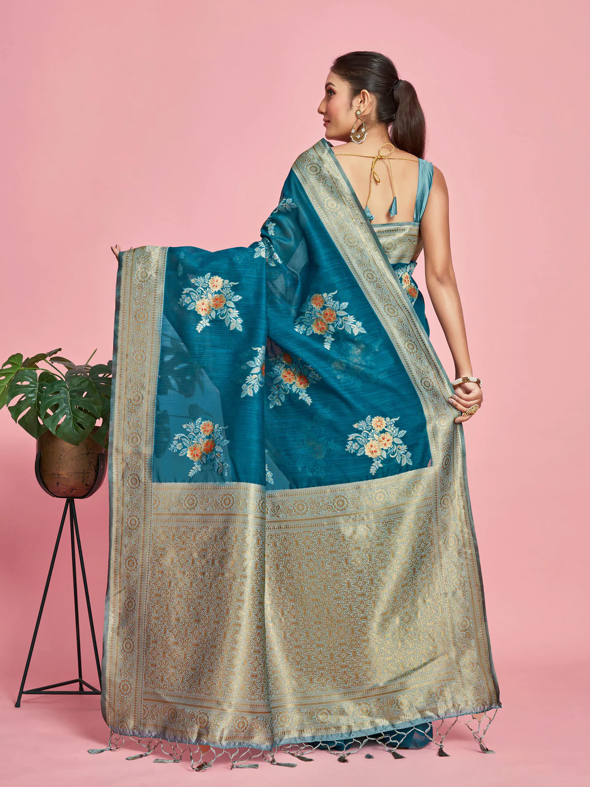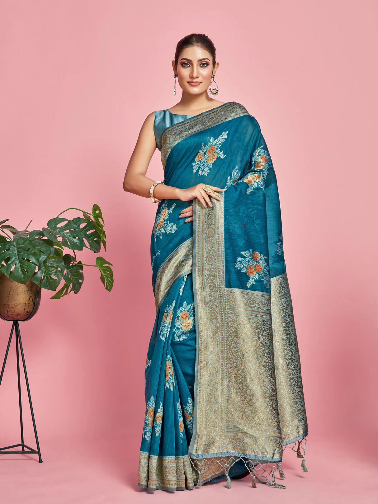 Women’s Woven Design Banarasi Linen Saree With Blouse Piece 5