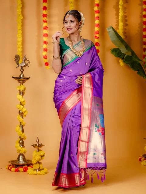 Women’s Woven Design Paithani Style Art Silk Saree With Blouse Piece