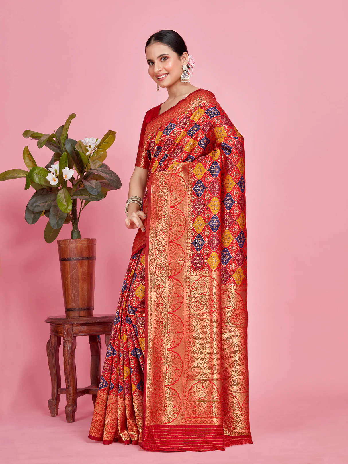 Women’s Woven Design Patola Art Silk Saree With Blouse Piece