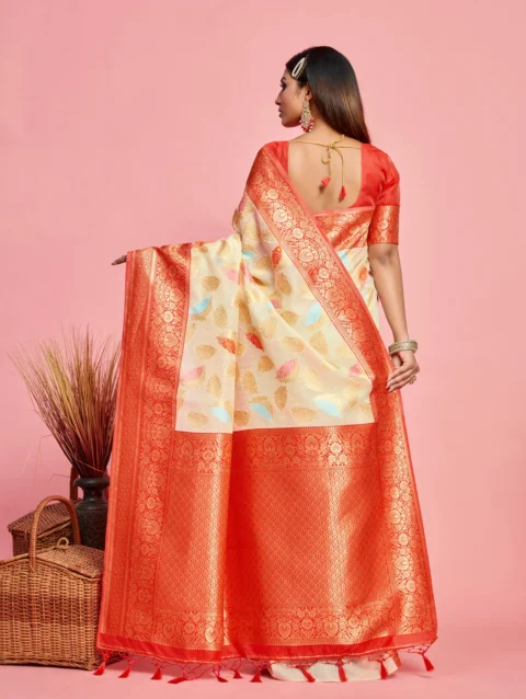 Women’s Woven Design Kanjivaram Linen Saree With Blouse Piece 3